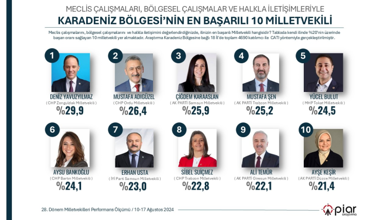 PİAR Araştırma Şirketi, 28. Dönem Milletvekilleri Performans Ölçümü Raporu yayımlandı. 7 bölgeden grafiklerle açıklananaraştırmada en Başarılı 75 Milletvekili yer alıyor.