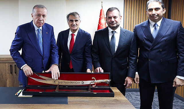 Görüşmenin sonunda Başkan Ertuğrul Doğan, Asbaşkan Zeyyat Kafkas ve Şenol Güneş tarafından, Cumhurbaşkanı Erdoğan’a üzerinde isminin yer aldığı işlemeli bir Sürmene kılıcı hediye edildi.