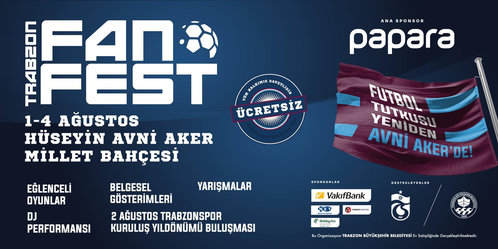Trabzon Büyükşehir Belediyesi ev sahipliğinde, Trabzonspor'un destekleriyle düzenlenecek Trabzon Fan Fest, 1-4 Ağustos tarihleri arasında Hüseyin Avni Aker Millet Bahçesi'nde futbolseverlerle buluşuyor. Papara ana sponsorluğunda gerçekleşecek festivalde, katılımcılar için unutulmaz bir deneyim sunulacak.KATILIMLAR ÜCRETSİZ