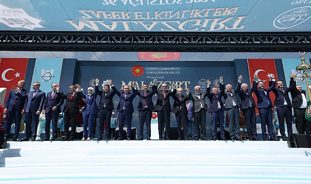 Muş'ta düzenlenen 'Malazgirt Zaferi' programında Erdoğan'ın konuşmasının ardından Cumhur İttifakı 'protokolü'yle birlikte poz vermeye davet edilen kuvvet komutanları sahneye çıkmadı.Cumhurbaşkanı Tayyip Erdoğan, Okçular Vakfı'ınn Malazgirt Milli Park Alanı'nda düzenlediği "Malazgirt Zaferi'nin 953. Yıl Dönümü Kutlama Programı"na katıldı.Törende Erdoğan'ın konuşmasının ardından 'potokol' üyeleri kameralara poz vermek için sahneye davet edildi. Kabine üyeleri ile AK Parti ve MHP yöneticilerinin yanı sıra Deniz Kuvvetleri Komutanı Oramiral Ercüment Tatlıoğlu, Kara Kuvvetleri Komutanı Orgeneral Selçuk Bayraktaroğlu, Hava Kuvvetleri Komutanı Orgeneral Ziya Cemal Kadıoğlu ile Jandarma Genel Komutanı Orgeneral Ali Çardakcı da ismi okunanlar arasında yer aldı. Ancak dün Selçuklu Mezarlığı'nda Erdoğan'ın yanı sıra MHP Genel Başkanı Devlet Bahçeli, BBP Genel Başkanı Mustafa Destici ve HÜDA PAR Genel Başkanı Zekeriya Yapıcıoğlu ile poz veren Hava Kuvvetleri Komutanı Ziya Cemal Kadıoğlu ve Deniz Kuvvetleri Komutanı Oramiral Ercüment Tatlıoğlu'nun yanı sıra diğer kuvvet komutanları da bu defa sahneye çıkmadı.